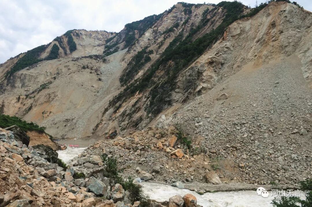 5.12汶川地震在紫坪铺水库库区形成的山体崩塌与滑坡。范晓摄影