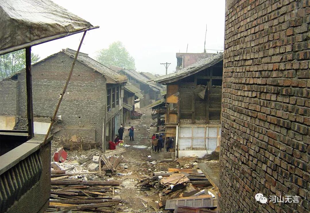 2005年4月,岷江上游紫坪铺水库蓄水前因即将被淹没而被拆除的汶川漩口镇。漩口镇曾经是成都与汶川之间的交通重镇。范晓摄影