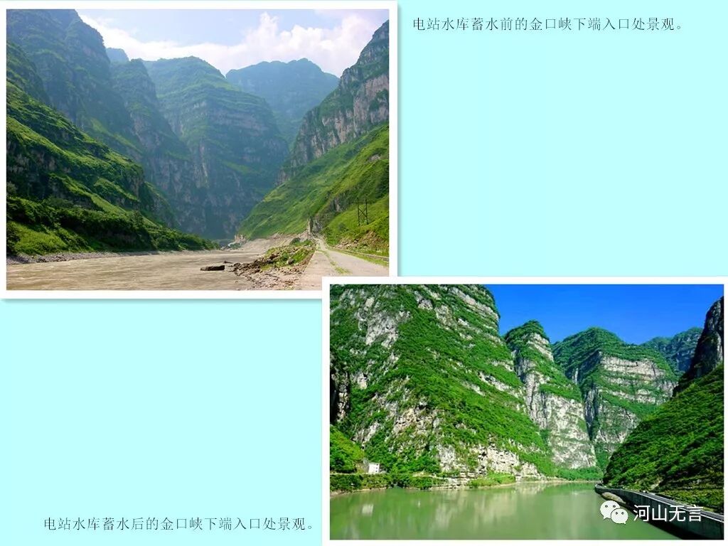 电站水库蓄水前后,大渡河金口峡下端入口处景观对比。范晓摄影