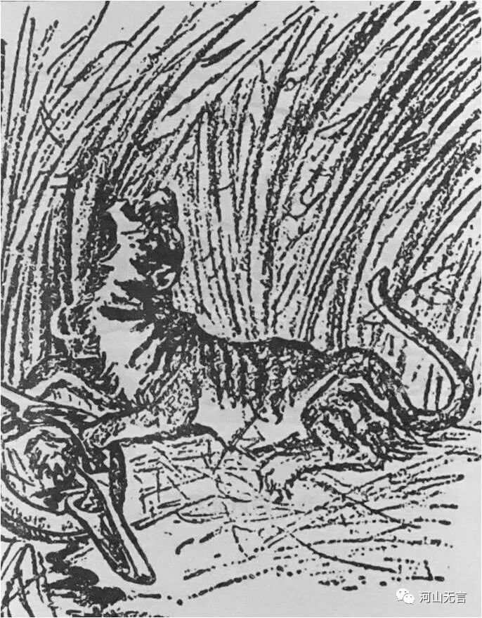 落在陷阱里的塔里木虎。斯文·赫定素描于1899年