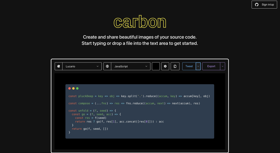 Carbon是开源免费的代码图片生成器,可以快速生成漂亮的代码图片。操作简单,直接将代码粘贴在代码区,设置想要的格式即可。