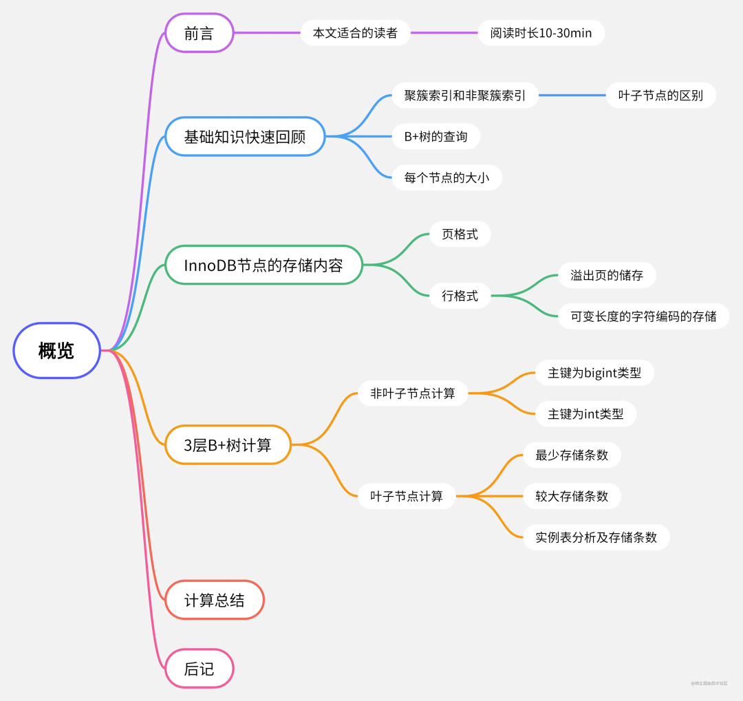 根据上面三种不同情况下的计算,可以看出,InnoDB三层B+树情况下的数据存储量范围为 一百二十多万条 到 将近5亿条,这个跨度还是非常大的,同时我们也计算了一张博客信息表,可以存储 约一千万条 数据。所以啊,我们在做项目考虑分表的时候还是得多关注一下表的实际情况,而不是盲目的认为两千万数据就是那个临界点。如果面试时谈到这块的问题,我想面试官也并不是想知道这个数字到底是多少,而是想看你如何分析这个问题,看你得出这个数字的过程。如果本文中有任何写的不对的地方,欢迎各位朋友在评论区指正🥰。