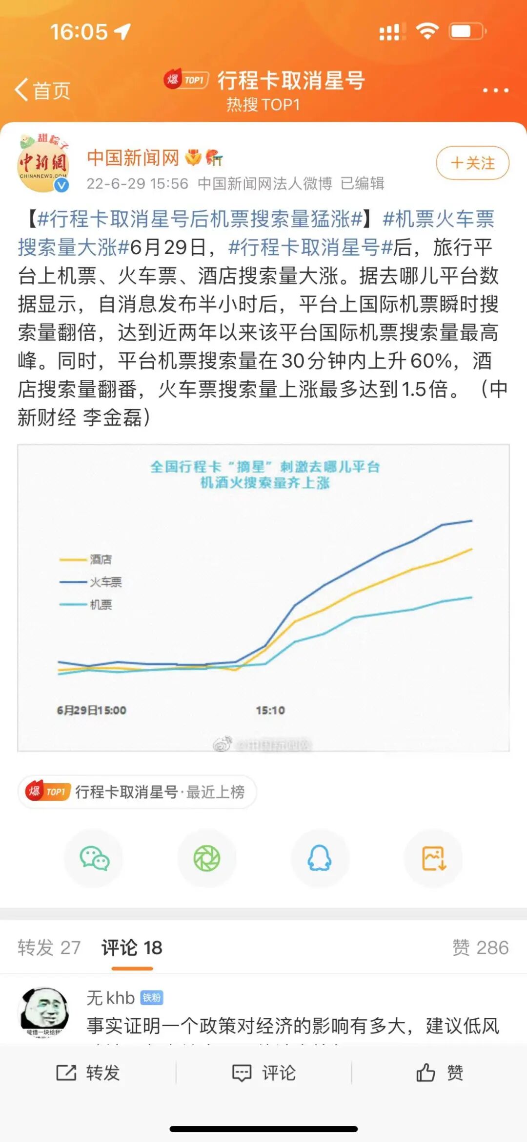 无独有偶,同样是在6月29日,工信部宣布:“为坚决落实党中央、国务院关于‘外防输入、内防反弹’总策略和‘动态清零’总方针,支撑高效统筹疫情防控和经济社会发展,方便广大用户出行,即日起取消通信行程卡‘星号’标记。”在过去两年多的防疫中,通信行程卡“星号”标记曾困扰不计其数的人,给他们的正常出行带来诸多不便。如今,工信部宣布取消“星号”标记,可谓是一次顺应新形势的重要措施。据澎湃新闻报道:“去哪儿平台数据显示,3点半,自消息发布半小时后,平台上国际机票瞬时搜索量翻倍,达到近两年以来该平台国际机票搜索量最高峰。同时,平台机票搜索量在30分钟内上升60%,酒店搜索量翻番,火车票搜索量上涨最多达到1.5倍。”取消“星号”标记的威力,可见一斑。不过,需要提醒的是,取消“星号”标记只是第一步,接下来关键是落实情况。