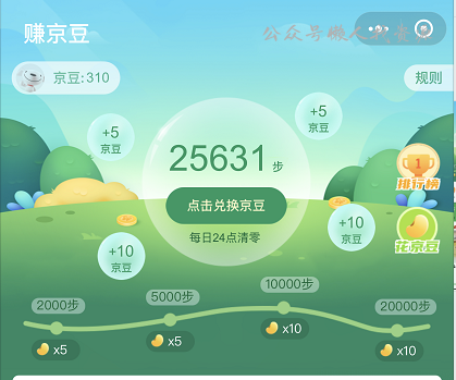 当你步数超过2W之后,是可以到赚京豆这个小程序去换300京豆的。