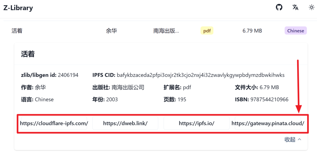 然后就可以看到弹窗,下面的四个链接就是电子书地址