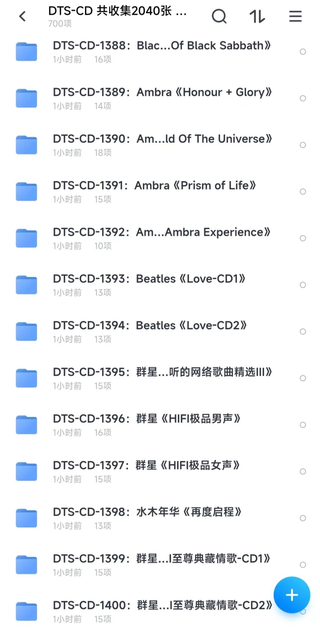 今天文娜给大家分享的是10000多首DTS格式无损音乐歌曲CD专辑大合集,资源大小为356GB,所有歌曲格式均为无损DTS格式,因为歌曲多达10000多首,文章中就不放详细的各单了,都在网盘里面,这套资源放其他盘已被和谐,重新采用天翼云盘分享,自己获取按文件夹内要求下载即可!