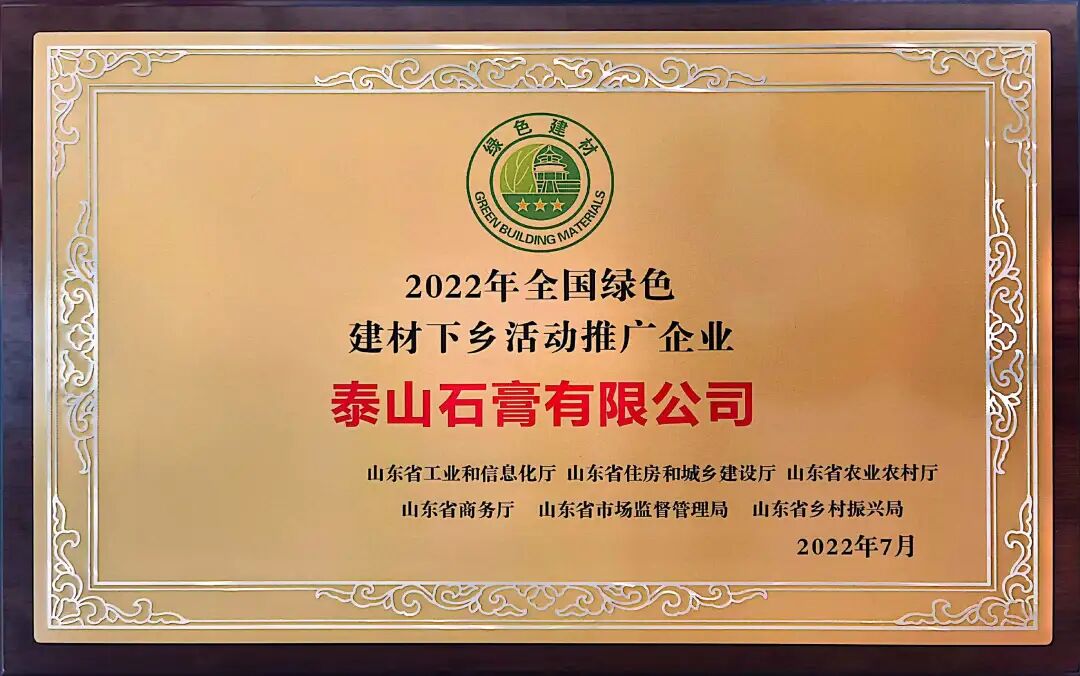 推广和应用绿色建材,是保护环境、节约资源,实现可持续发展的重要举措。泰山石膏始终贯彻创新、协调、绿色、开放、共享5大发展理念,坚持绿色产品、低碳产品、健康产品、优质产品的发展方向,不断围绕资源综合利用、节能降耗、提质增效开展创新研究。此次入选2022年全国绿色建材下乡活动推广企业,并作为具有绿色建材生产资质的企业受邀参展,是绿色建材下乡活动主办单位对泰山石膏技术创新能力、产品质量水平的又一次权威认证。