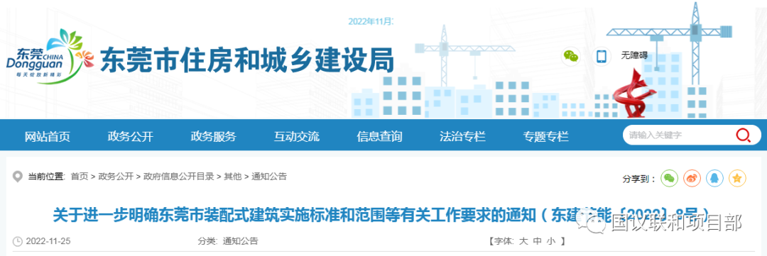 为进一步推动我市装配式建筑高质量发展,稳步推进新型建筑转型升级,根据《东莞市人民政府办公室关于印发〈东莞市人民政府关于大力发展装配式建筑的实施意见〉的通知》(东府办〔2017〕103号)、《东莞市装配式建筑专项规划(2020-2025)》等相关文件要求,结合我市装配式建筑实施情况,现对我市装配式建筑实施标准和范围等相关工作要求通知如下: