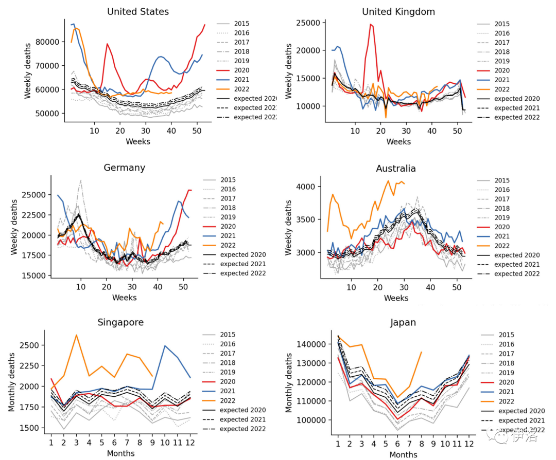 发达地区数据统计详细,死亡数更加准确,很容易直观得出超额死亡数量级(详细计算还需要考虑年龄结构调整,但作为慢变量,不影响直观巨大差异得出的定性判断)。台湾、新加坡、美国麻省、日本、韩国、香港,不同地区数据相互印证。