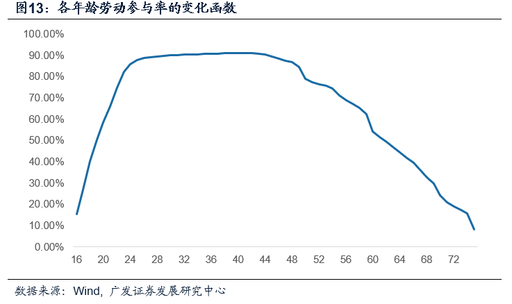 1. 根据《国务院关于工人退休、退职的暂行办法》,多数男性会集中在60岁退休,而女性工人和干部分别在50岁,55岁退休,因此从整体人口的角度来讲,劳动参与率的下跌是分次而非一次进行。同时,《中华人民共和国劳动法》只规定禁止雇佣16岁以下的人口,但并未规定禁止雇佣60岁以上的人口。因此,60岁以上的人口只要有劳动力能力和劳动意愿,仍然可以进入劳动力市场。直接扣除当年到达退休年龄的人口并不符合市场的实际情况。