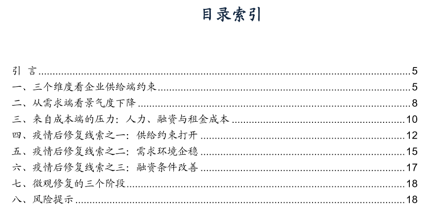 我们估计疫情之后微观修复将分为三个阶段,第一阶段是供给打开驱动,第二阶段是需求改善驱动,第三阶段是融资改善驱动。
