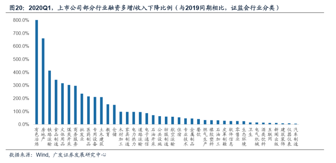 第三,对于房地产、基建类行业(铁路运输、电力热力供应、道路运输、公共设施管理、燃气供应等)、消费类行业(食品制造、文体用品、医药制品)、服务类行业(如批发业、教育、酒店餐饮)等行业,融资现金流的改善一方面可以部分对冲收入下滑,另一方面也成为企业经营改善的重要因素,此类行业可能成为疫情后率先恢复的产业部门
