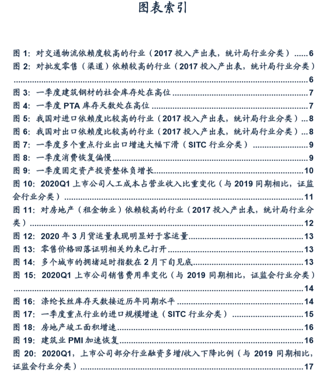 新冠疫情对各行业的影响逻辑可以概括为三点:供给约束、需求收缩、成本刚性。其中前两个因素影响营收,叠加第三个因素影响利润。我们通过1-3月规模以上工业企业财务数据及上市公司一季度财务数据对这一问题进行分析。疫情对经济的影响深远而广泛,在经济活动让渡于疫情防控的大环境下,绝大多数行业与公司受到不同维度的经营条件约束。疫情对各行业的影响逻辑可以概括为三点:供给约束、需求收缩、成本刚性。这三个因素中,供给约束与需求收缩影响营收,叠加成本因素共同影响利润。在供给端,随着各行各业对渠道与物流依赖度上升,运输不畅与渠道停摆成为供给约束的成因之一;人员复工率不足成为供给约束的成因之二;海外疫情扩散、原材料供给不足成为供给约束的成因之三(见我们的报告《如何判别疫情对不同行业的影响?》)。在需求端,订单等景气收缩对企业产品与服务销售形成约束。在成本端,房租、人力、融资等刚性成本对企业经营构成巨大压力。