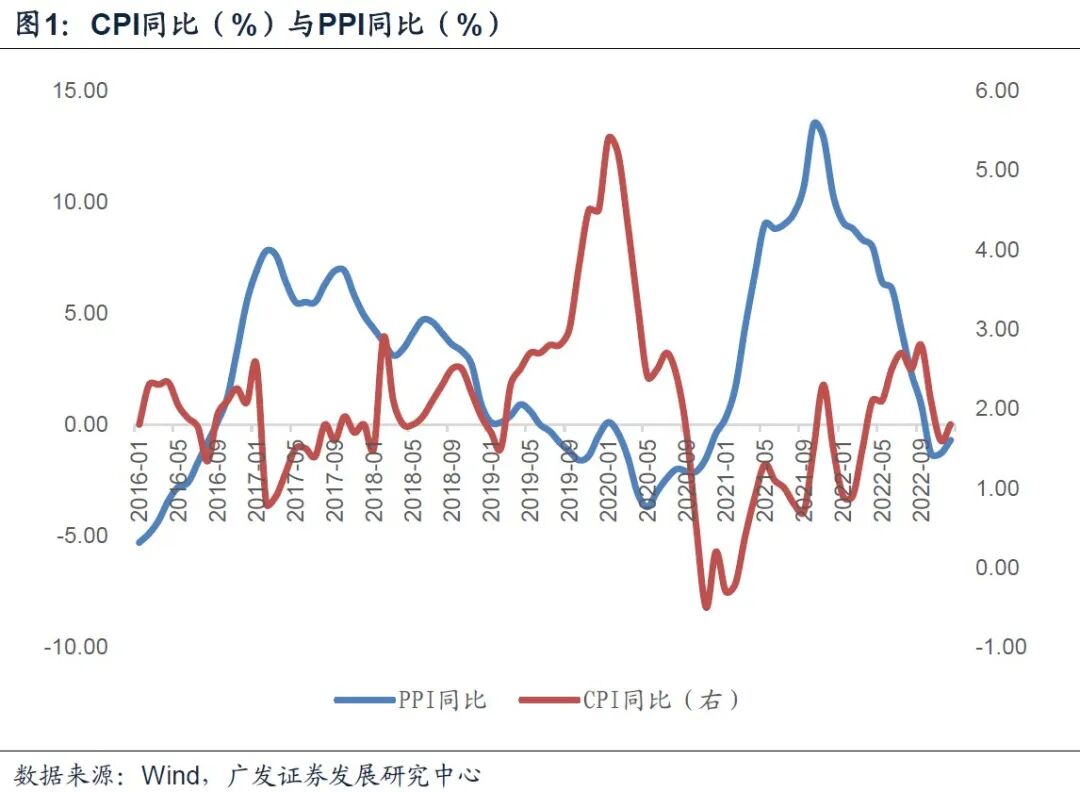 在年度展望《走出谷底》中,我们曾指出:本轮PPI周期可能处于尾段,2023年后三个季度有较大概率处PPI上行期。从近年名义GDP和PPI同周期来看,同期应也属于名义GDP的修复期,这一点对我们理解企业盈利周期有重要参考意义。从猪肉价格基数分布看,2023年CPI走势很可能是前高后低,正常情况下年值不至太高。央行担心的“M2增速处高位,总需求进一步复苏升温可能带来滞后效应”及“疫情防控更加精准后消费动能可能快速释放”是建立在消费快速恢复的假设下,目前暂无现实对应。PPI周期位置是更值得关注的问题,本轮PPI下行期已持续12个月左右。按环比推演,CRB周期底部可能最晚至2023年4月前后,对应PPI可能届时确认底部;假如上行期参考前两轮的17个月,则下一轮PPI上行期大约会至2024年三季度前后结束。这意味着2023年后三个季度有较大概率处于PPI上行期,从近年名义GDP和PPI同周期来看,同期也属于名义GDP的修复期,这一点对我们理解企业盈利周期有重要参考意义。