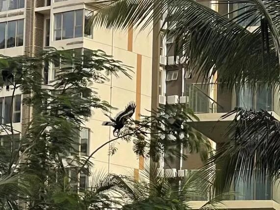 不久前,ONE PARK金边壹号园区内飞来一只“大鸟”,被正在执行园艺修剪任务的工作人员记录下视频。