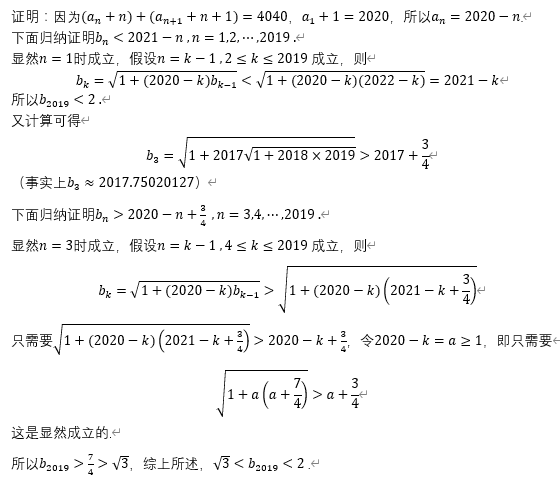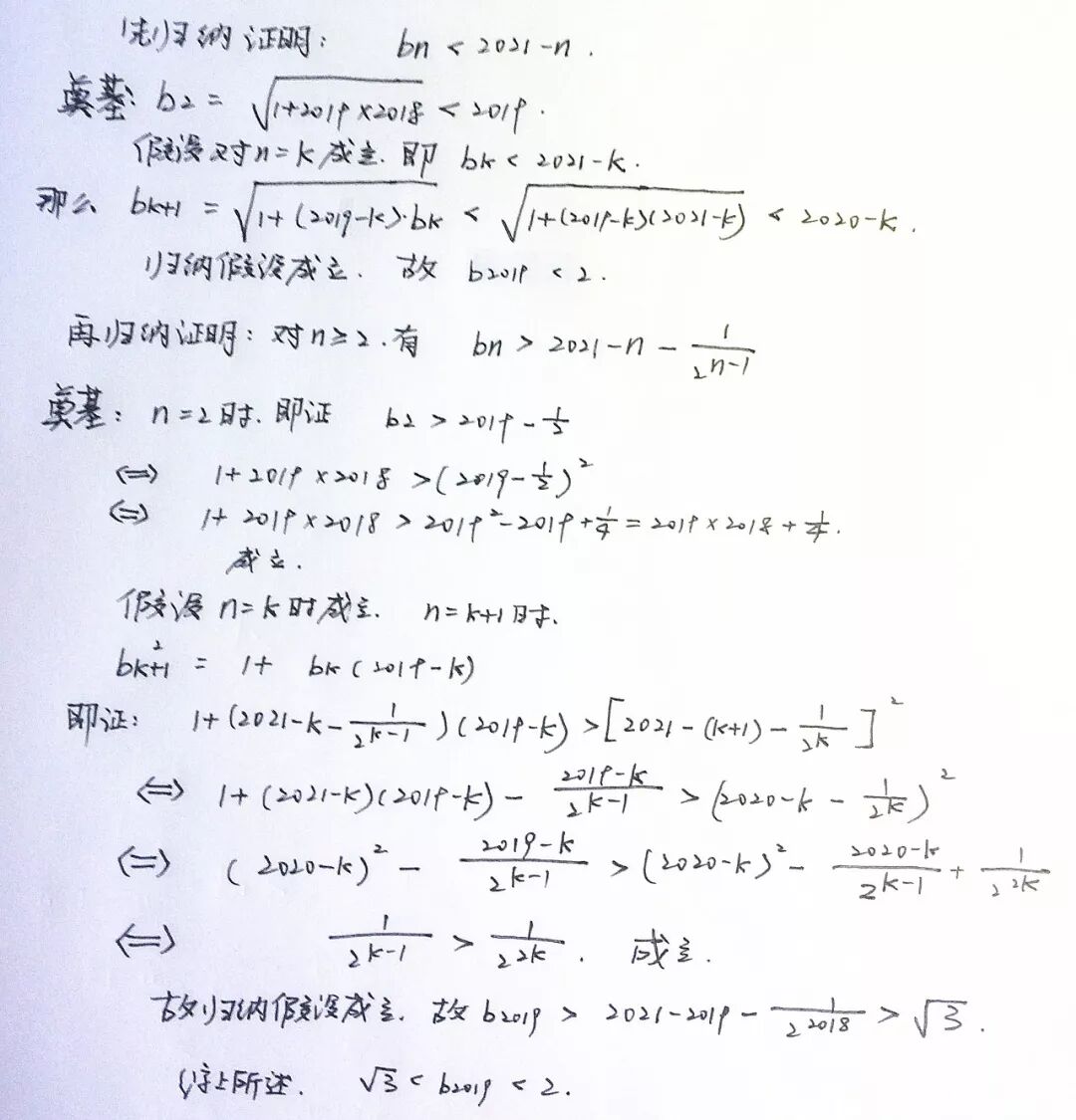 对于求解an=2020-n,不是本问题的重点,故我们重点展示在已知an的通项公式之后,不等式的证明过程。先看看解法最多的一种吧,该解法的是来自于江西师范大学附属中学的周越明(也是我们收到的第一份解答)。