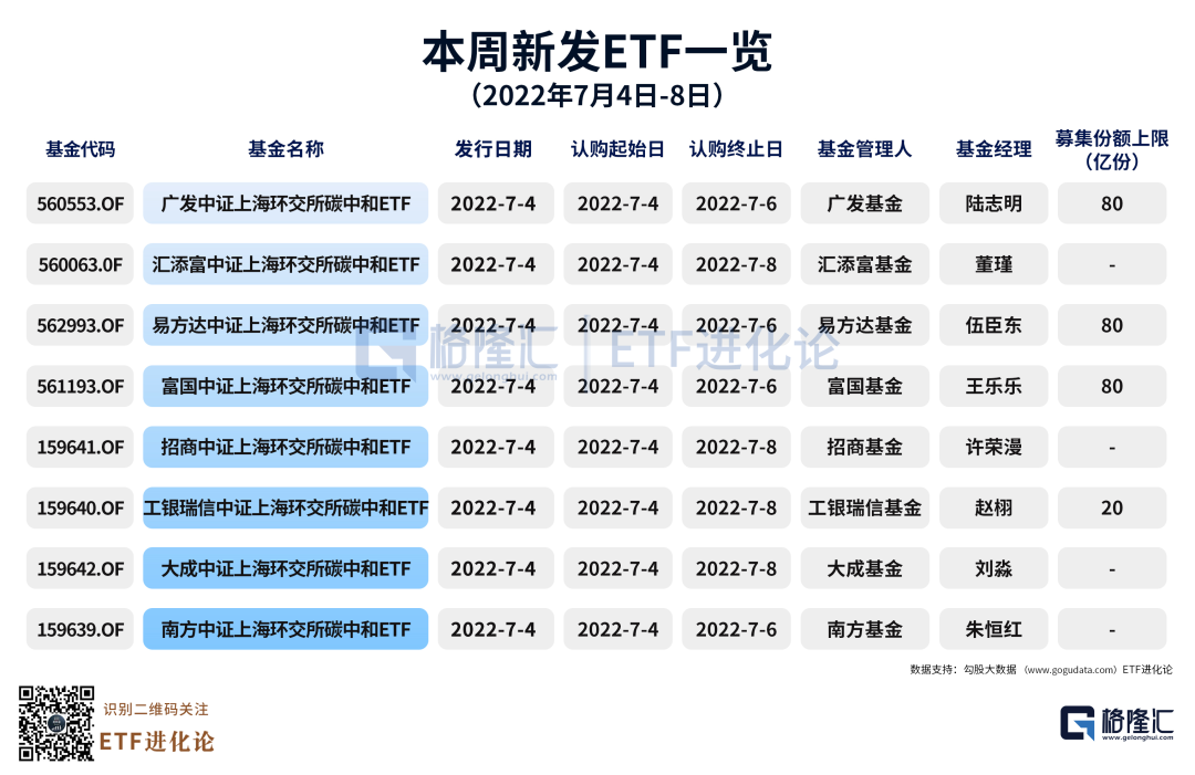 8只碳中和ETF在今天开始正式发行,标志着以“碳中和”命名的主题ETF正式登录A股舞台。