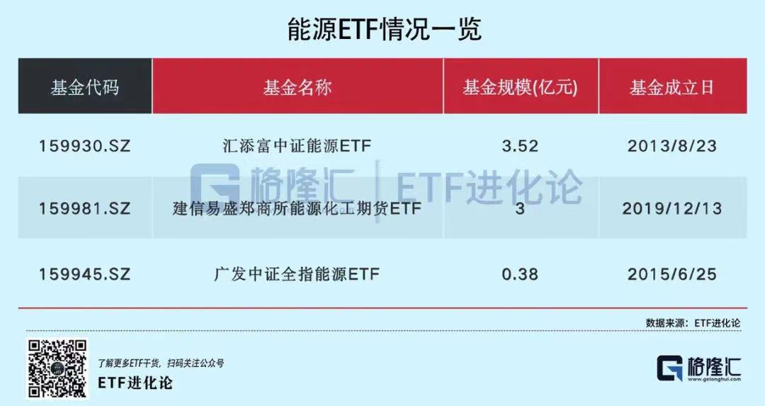 相比较于美股市场,A股市场能源股没得到市场太多关注,能源ETF只有三只,且规模很小。