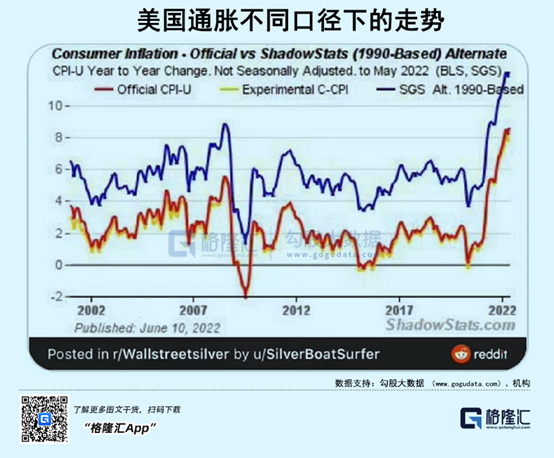 而在全球116个国家中,美国8.6%的通胀位列第28名。如果按照1990年计算公式来测算通胀率,美国CPI应该是16%。