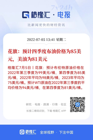 花旗甚至预测,到今年四季度,布油将降至85美元/桶。