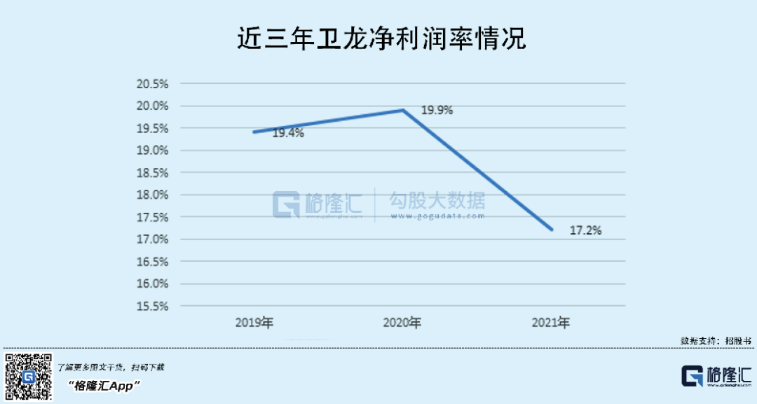 报告期内,卫龙实现收入33.85亿元、41.2亿元、48亿元;年内利润分别为6.58亿元、8.19亿元、8.27亿元;净利润率分别为19.4%、19.9%、17.2%,高于2021年中国休闲食品行业的平均净利润率(10%),不过可以看出波动,其盈利还是明显有所放缓。