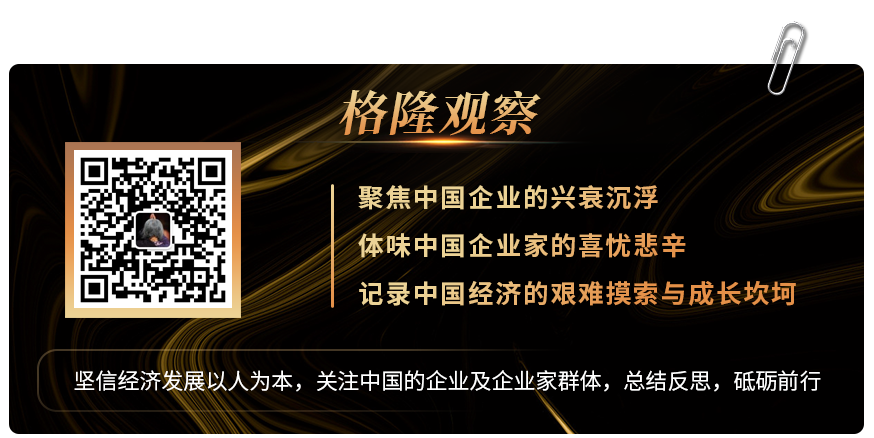 基于此,我们特推出全新栏目《格隆观察》,以专业的视角,以有温度的笔墨,以负责任的态度,聚焦中国企业的兴衰沉浮,体味中国企业家的忧欢悲辛,记录中国经济的艰辛摸索与成长坎坷,总结反思,少走弯路,砥砺前行。
