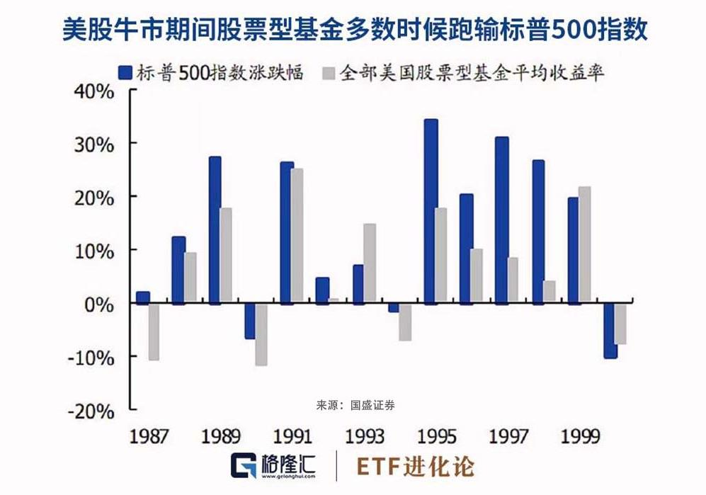 1987-1998年这15年中,有12年标普500指数收益率显著优于全国美国股票型基金平均收益率。
