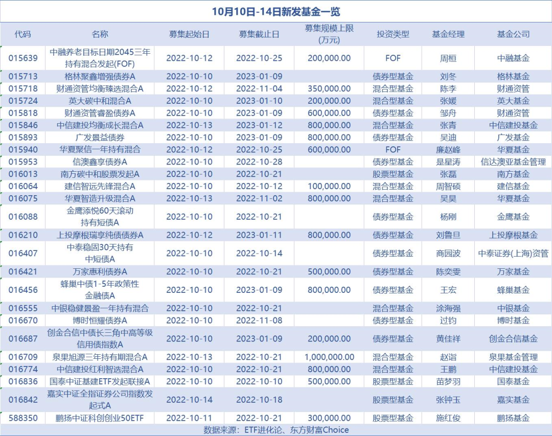 进入四季度基金发行升温明显,市场迎来抄底资金。10月首个交易周新发基金数量为25只,10月排上发行档期的基金就有44只,若加上目前正在发行中的70多只基金,当前新发基金数量超过110只。