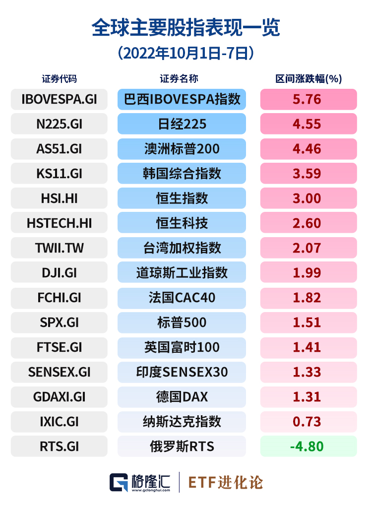 国庆假期A股休市一周,国际市场风云变幻,全球主要股指先涨后跌。