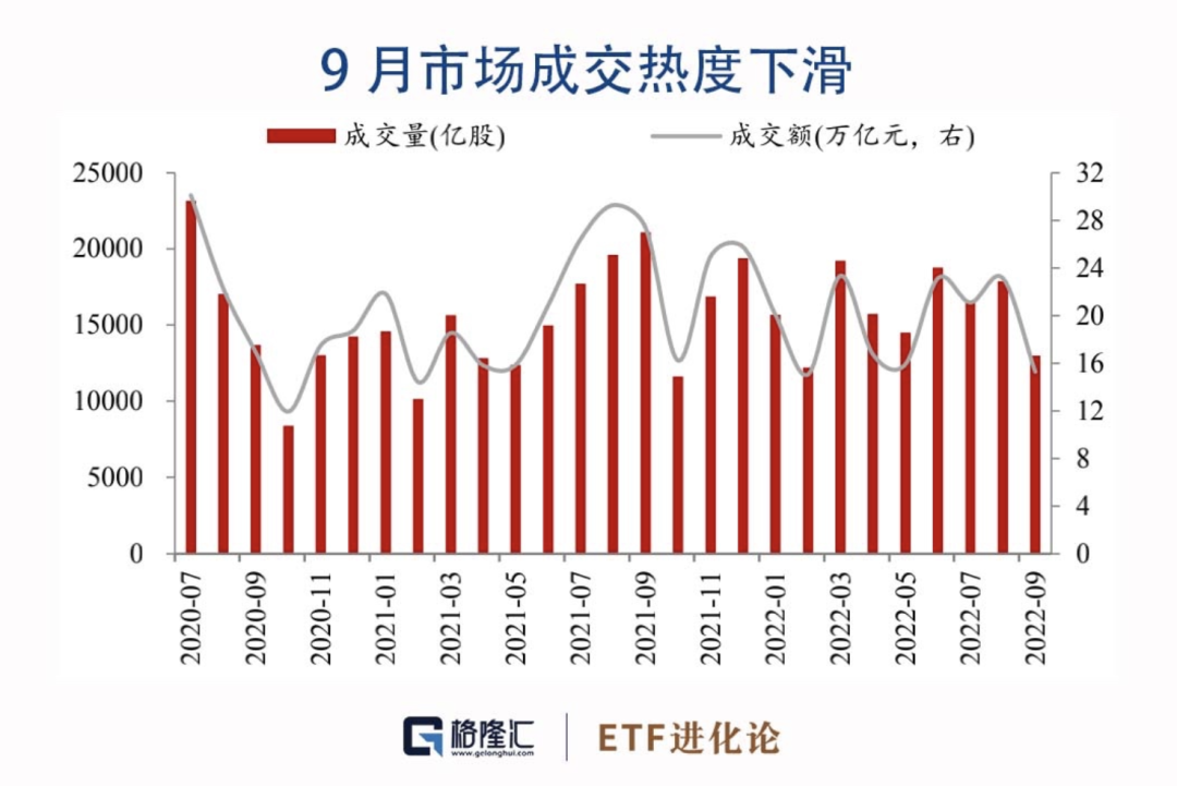 9月成交热度接近4月,今年4月上证指数创新2863点年度新低。10月12日上证指数下探到2934点,成交额有所回升,全天成交7099.21亿,今日成交额也超7000亿。
