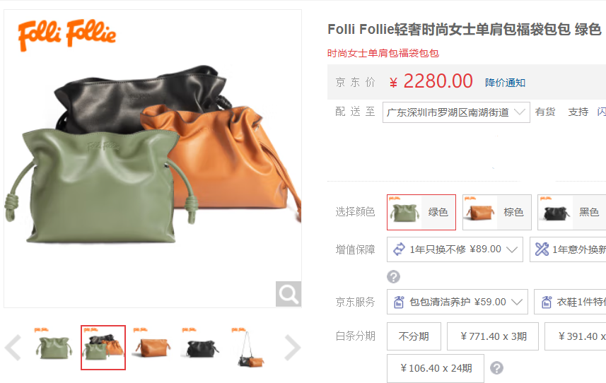 Folli Follie这款抽绳福袋包,官方价2280元。