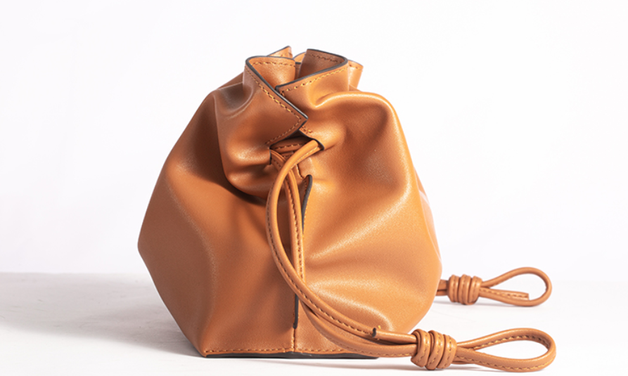 △工作室实拍:抽绳不收束时是饺子包的造型