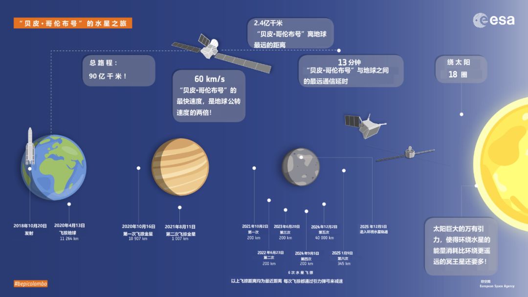 贝比科隆博号的水星之旅时间表。来源:ESA,汉化:鸑鷟鹓鶵。
