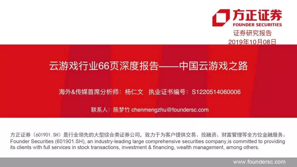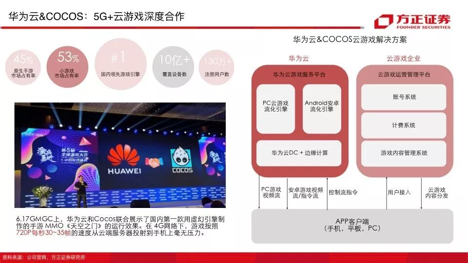 会上方正证券还联合竞核发布了云游戏行业66页深度报告《中国云游戏之路》。以下报告全文: