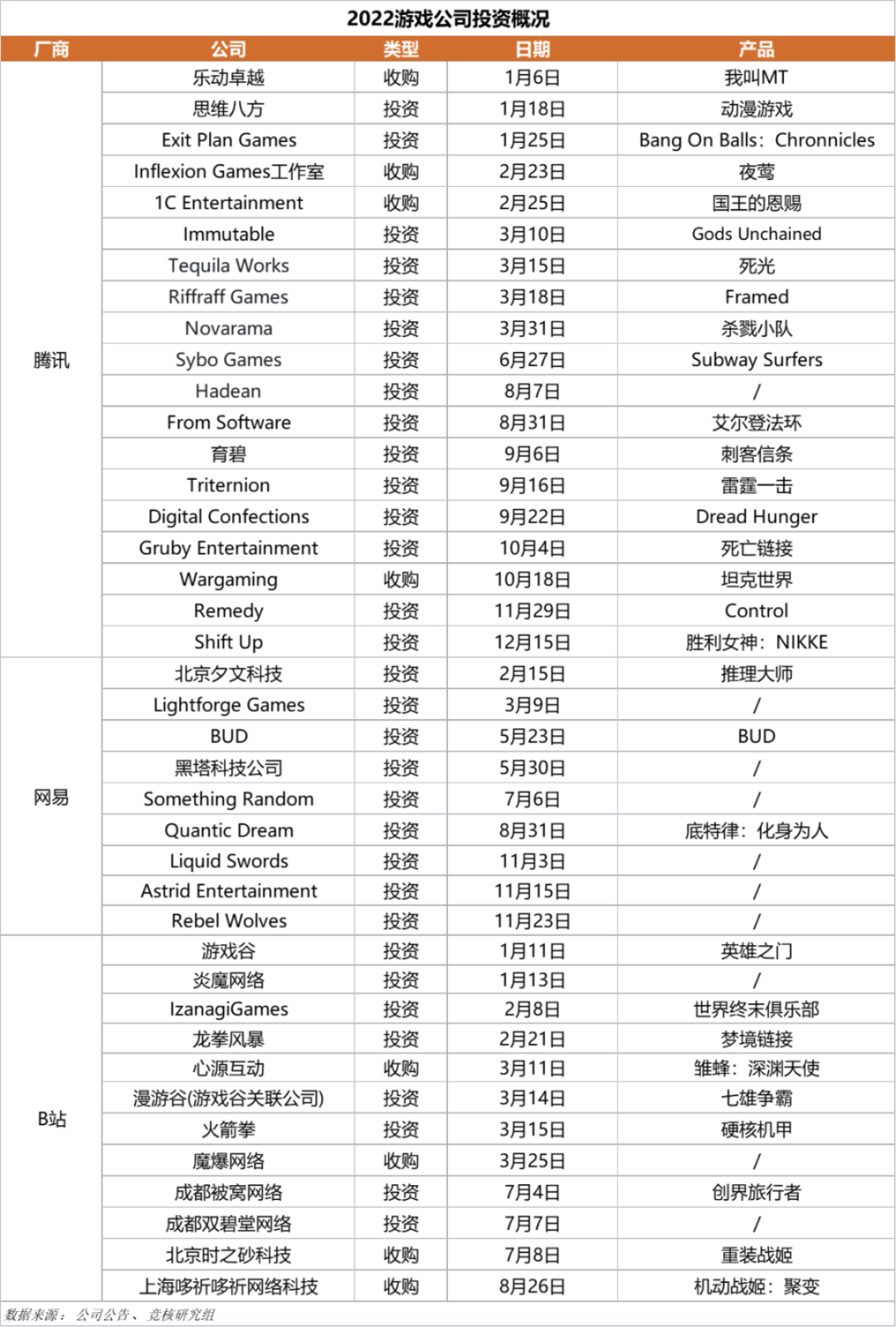 产品上新方面,2022年腾讯、网易、字节跳动、快手等互联网大厂分别上线了约12款、4款、2款、2款手游产品。