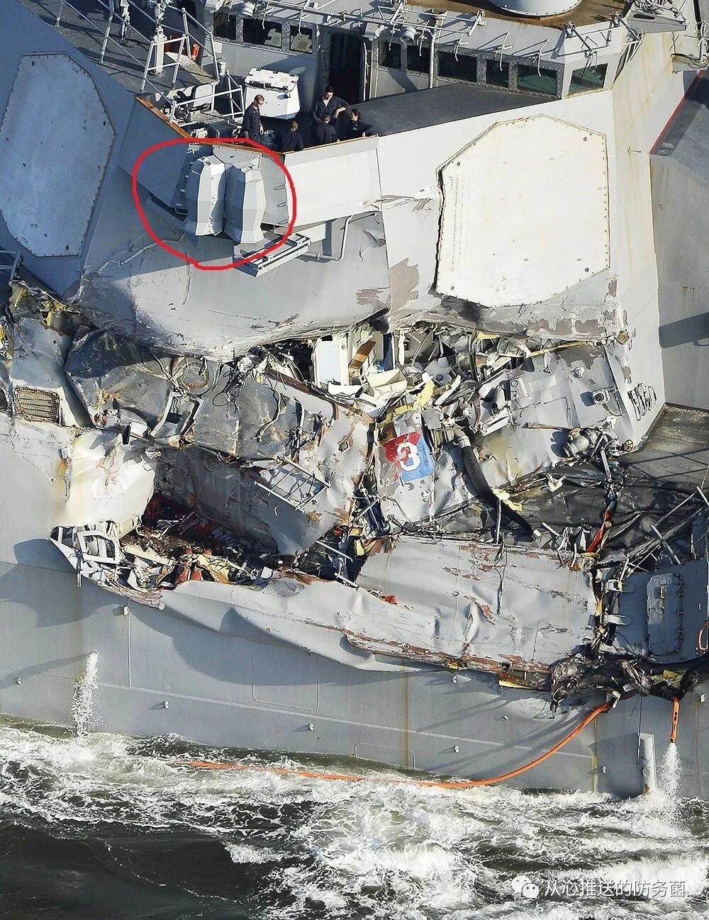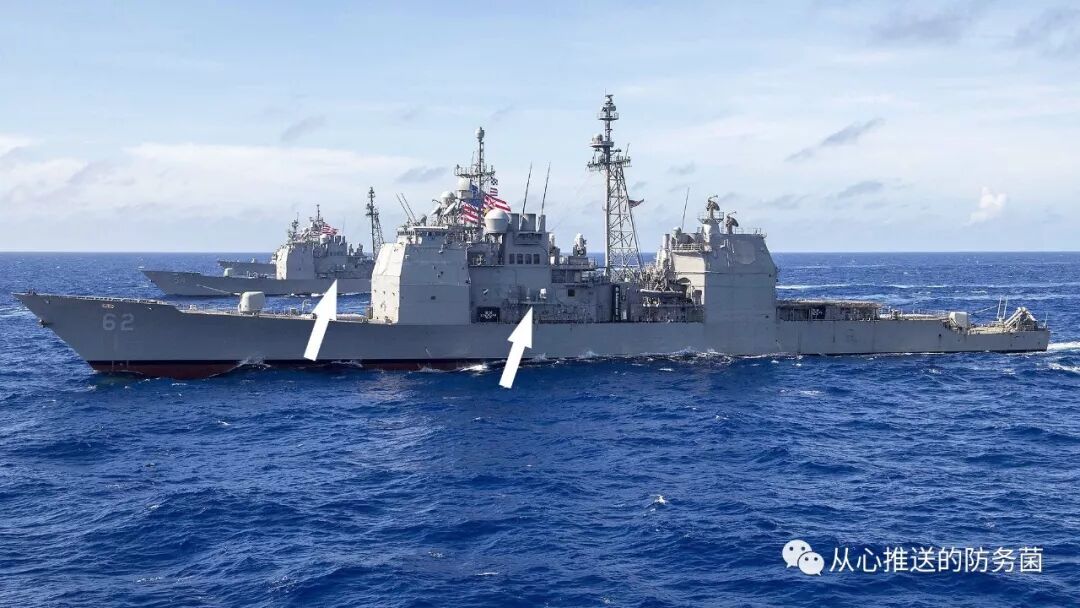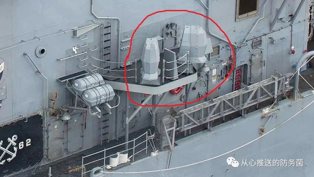 “提康德罗加”级巡洋舰“伊利湖”号上的AN/SLQ-32 。各种版本的“ Slick 32”已经部署在美国海军舰队中,并且已经使用了数十年SEWIP最新的Block III迭代通过添加最新的有源电子扫描阵列技术和其他增强功能,将这些电子战功能提升到了一个全新的水平。实际上,SEWIP显然正在发展成为一种攻防兼备的武器系统。“水面电子战改进计划”演示动画(翻译&字幕 by 防务菌)尽管众所周知,AN/SLQ-32不再是海军“甲板上层”电子战生态系统中唯一的主要电子战装备。在美国海军公布的2017年6月遭遇恐撞击毁伤的“菲茨杰拉德”号驱逐舰(DDG 62)照片中,可以发现貌似其已经部署了一套全新的电子战硬件。相对于其他战舰,在这艘阿利·伯克级导弹驱逐舰的桥翼上多出了了一对刻面棺材状的设备。