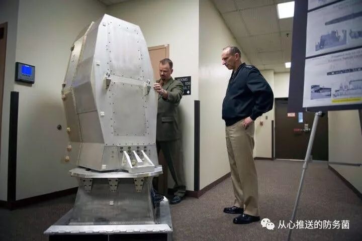这是唯一有迹可循的AN/SLQ-59原型详细图像。该系统似乎必须具有用于有源电子扫描阵列或某种其他类型发射器的开口。这张图片的图注为:2013年12月6日,海军作战部长(CNO)乔纳森·格林特(Jonathan Greenert)海军上将访问位于华盛顿的海军研究实验室(NRL),与NRL领导和项目专家进行交谈时视察了电子战系统展览。在访问期间,格林纳特还参观了NRL设施,观察电子战系统、反潜战项目和自主系统的不断创新。