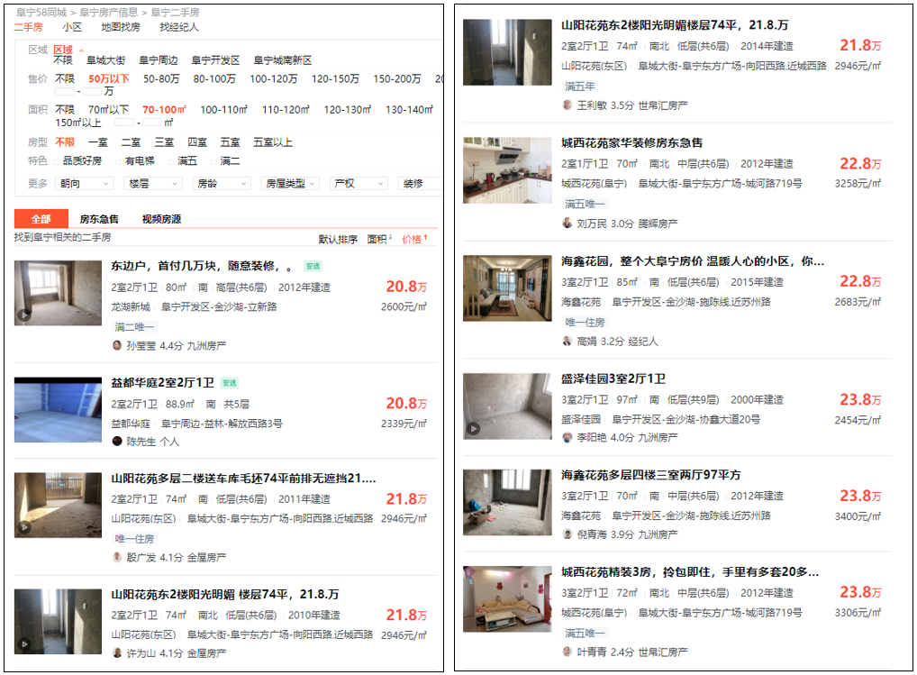 我们看70-100平的房子,售价在20多万的,也是大把大把的——如果有人还不信,可以自己到58同城上去查证一下。