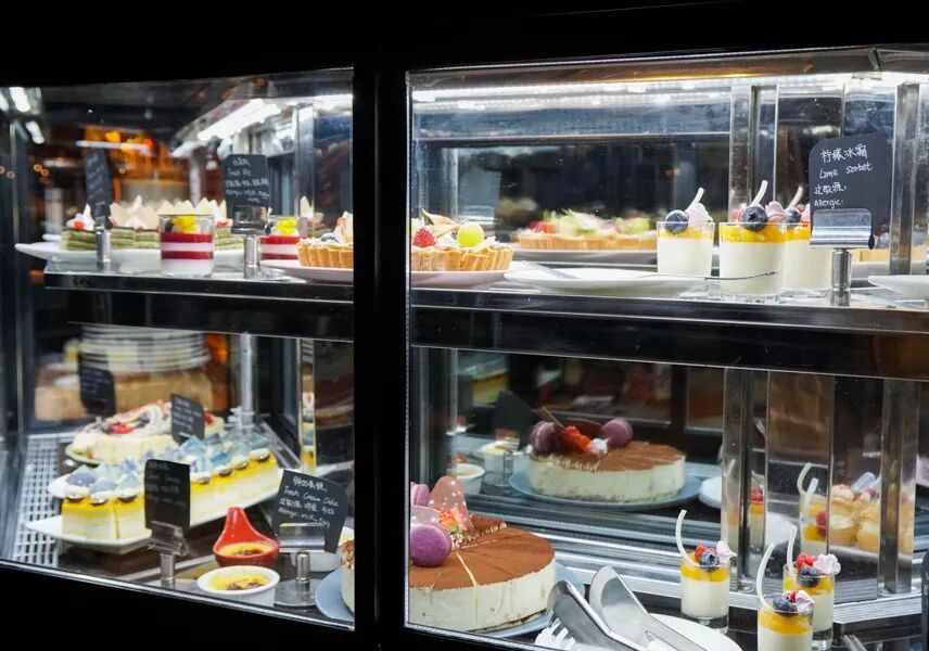 为了保证新鲜和口感,专门设置了冷柜放甜品。偌大的冷柜像展示台一样,进口原料制作的甜品一览无余!