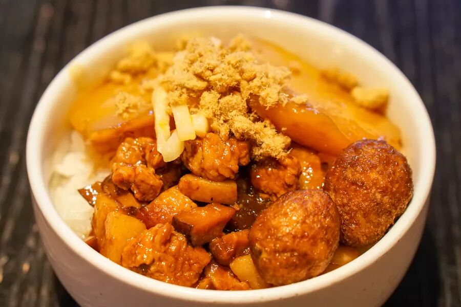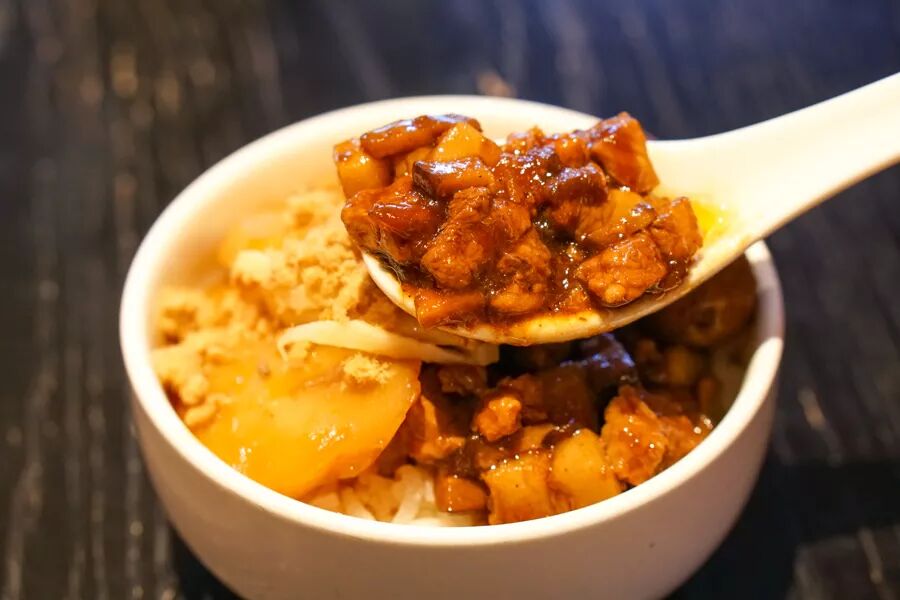 私心给自己舀了满满一大勺卤肉,浓油赤酱地盖在饭上大口进嘴,太满足~