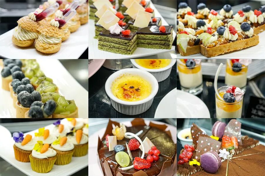 更别说泡芙、水果塔、慕斯、布丁、蛋挞...从口味到造型到装饰,都颇费一番功夫。我还发现个细节:每款甜品旁都放置过敏源提示,贴心提示特殊需求的客人~