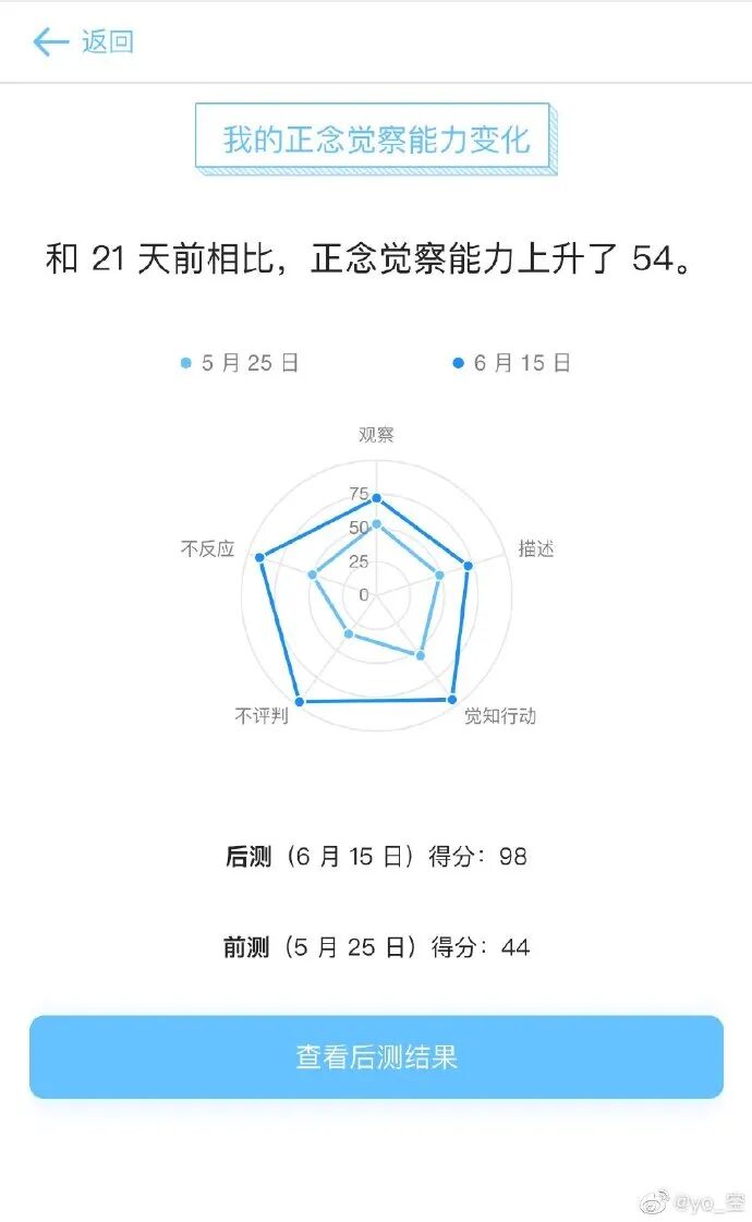 虽然我觉得现在的变化与我当时刚好离开老家,以及一直以来的心理咨询有关,但貌似正念的影响是最大的。