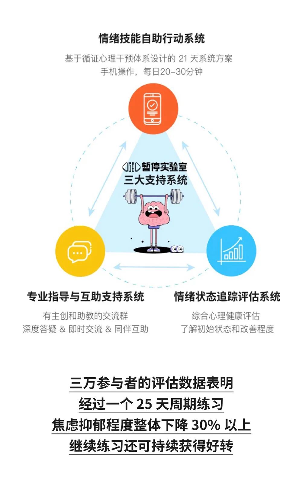 About Feature 一个锻炼情绪调节能力的在线心理健身房,全科班心理学硕博团队创立。科学练习计划+真人陪伴指导,25 天显著改善焦虑抑郁失眠困扰,提升幸福感。
