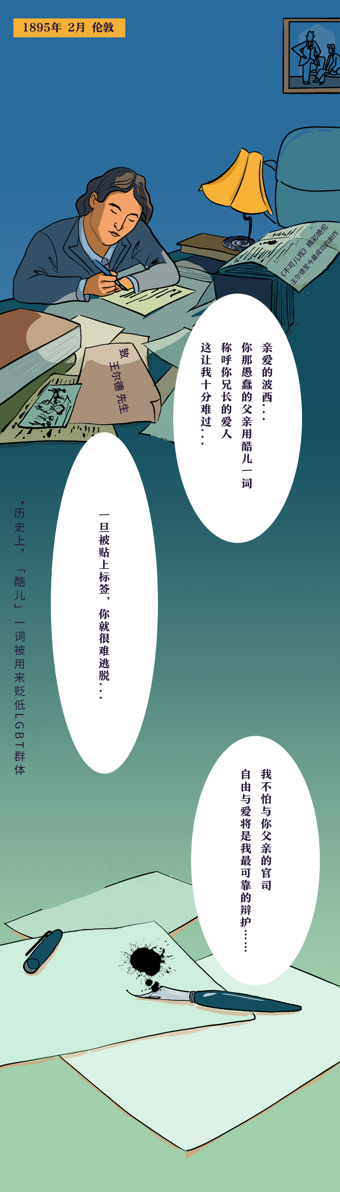据可查证的消息,剧作家王尔德(1854-1900)的同志爱人波西的父亲曾最先用「酷儿」一词公开辱骂同性恋。