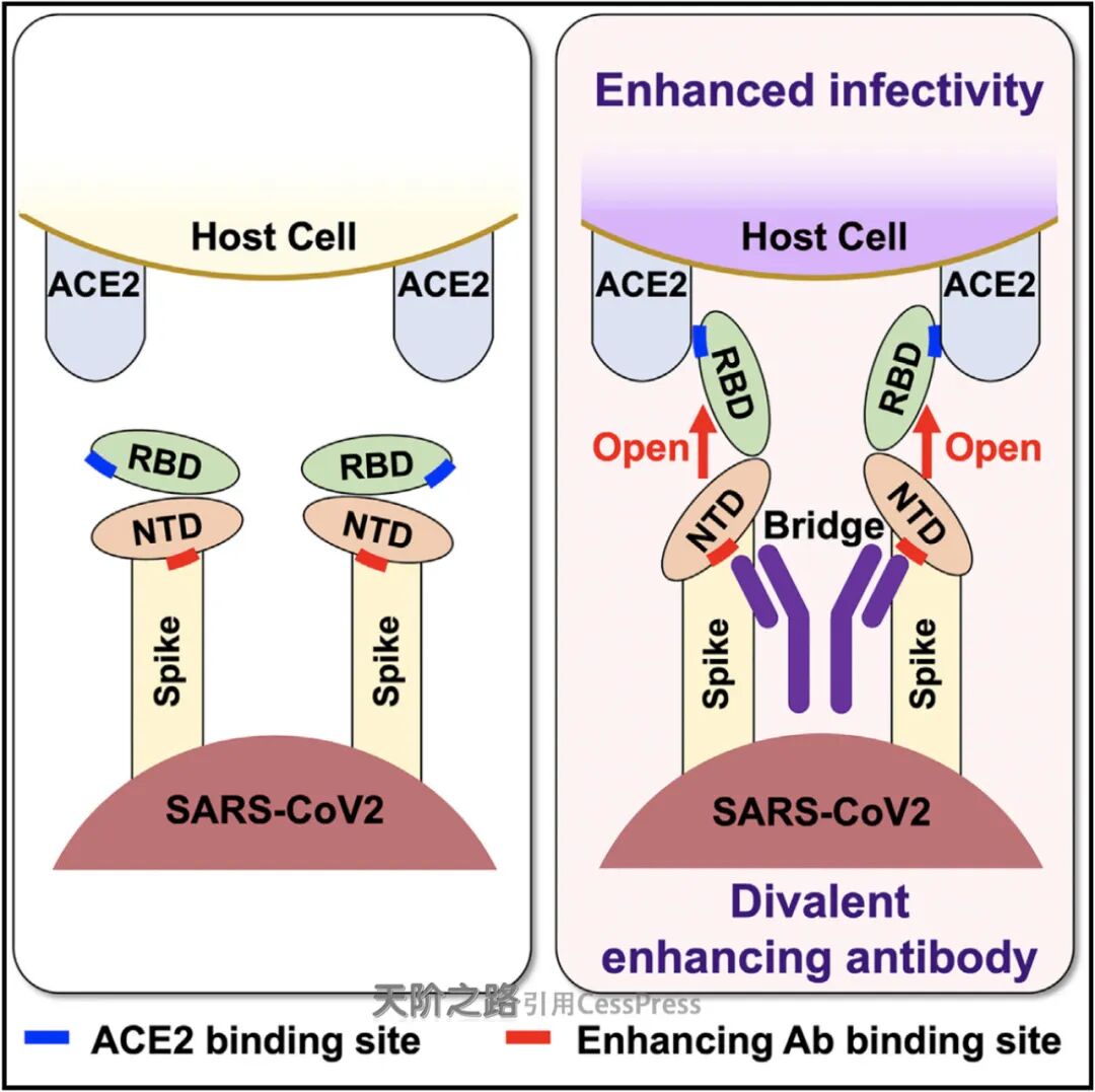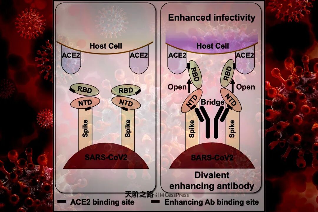 英国剑桥医学科学期刊《Cell press》发表的ADE效应研究显示,次优抗体(可来自早先接种的疫苗)增强了SARS-CoV-2新冠病毒对细胞的突破传染: