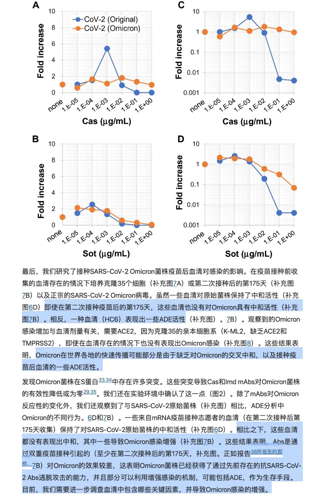 这些结果表明,Omicron在世界各地的快速传播可能部分是由于缺乏对Omicron的交叉中和的活性、以及接种疫苗后血清的一些ADE效应。