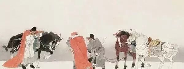最后六句为第三部分,写傍晚送别友人踏上归途。“纷纷暮雪下辕门,风掣红旗冻不翻”,归客在暮色中迎着纷飞的大雪步出帐幕,冻结在空中的鲜艳旗帜,在白雪中显得绚丽。旗帜在寒风中毫不动摇、威武不屈的形象是将士的象征。这两句一动一静,一白一红,相互映衬,画面生动,色彩鲜明。“轮台东门送君去,去时雪满天山路”,虽然雪越下越大,送行的人千叮万嘱,不肯回去。“山回路转不见君,雪上空留马行处”,用平淡质朴的语言表现了将士们对战友的真挚感情,字字传神,含蓄隽永。这一部分描写了对友人惜别之情,也表现了边塞将士的豪迈精神。