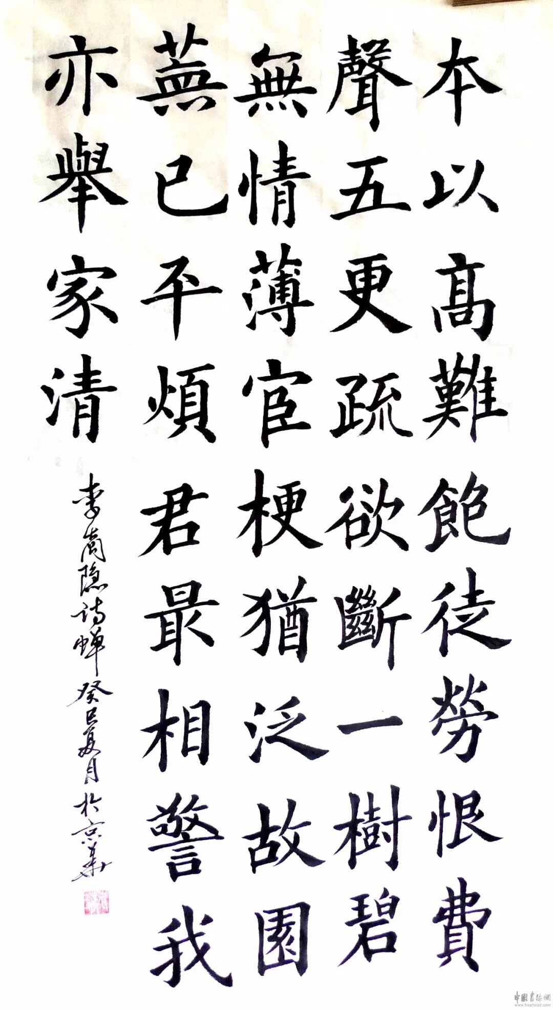最后两句是作者对蝉说的话:多劳你给我警告,我一家人的生活也和你一样清寒。“君”,指蝉。“警”,警醒,这里有触动的意思。蝉在告诫什么呢?有人说是警告诗人为什么不及早回头,早归故园;有人则认为是提醒诗人保持高洁的操守。此联前一句回到咏蝉上来,用拟人手法写蝉。后一句“君”与“我”对举,把咏物和抒情结合起来,呼应开头,首尾圆合。