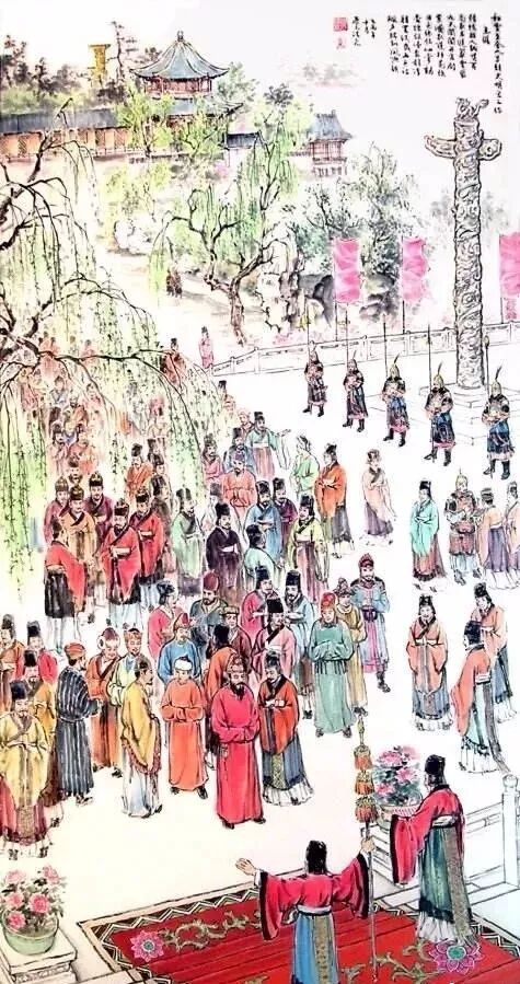 九重的皇宫打开了金红宫门,万国的使臣都躬身朝拜皇帝。