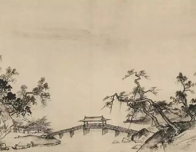 墨色浓淡干湿,虚实相生,成功地营造出江南烟雨朦胧的意境,